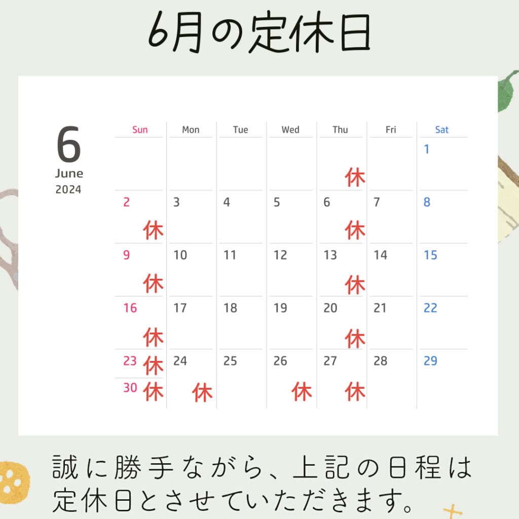 🗓 休業日: 6月24日 (月曜日)・26日 (水曜日)